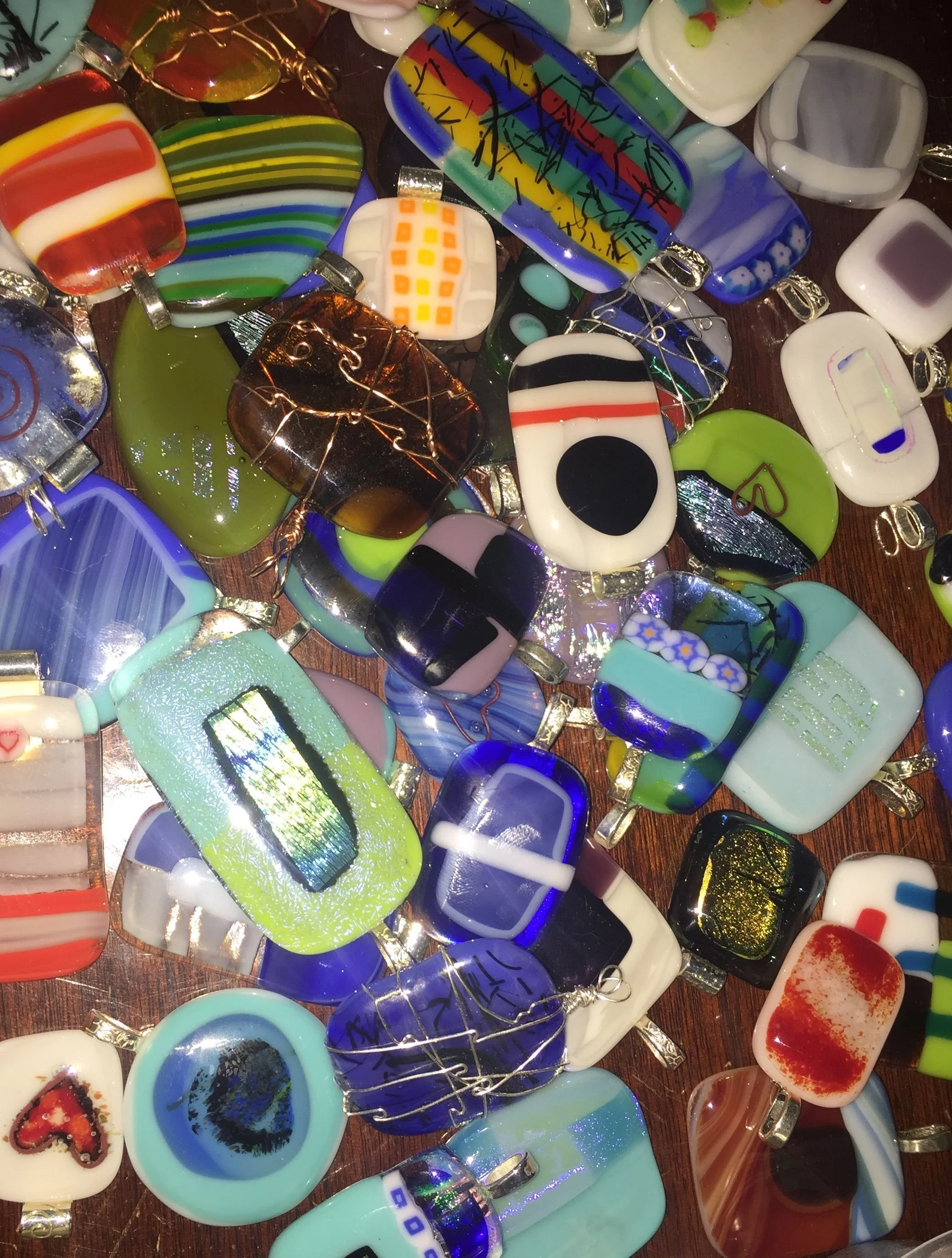 Glass Fusing Glass fusing combines light, color, and serendipity to create unique jewelry pieces. Each item goes through several stages of cutting, placing, and kiln fusing to develop richly layered texture and depth.
